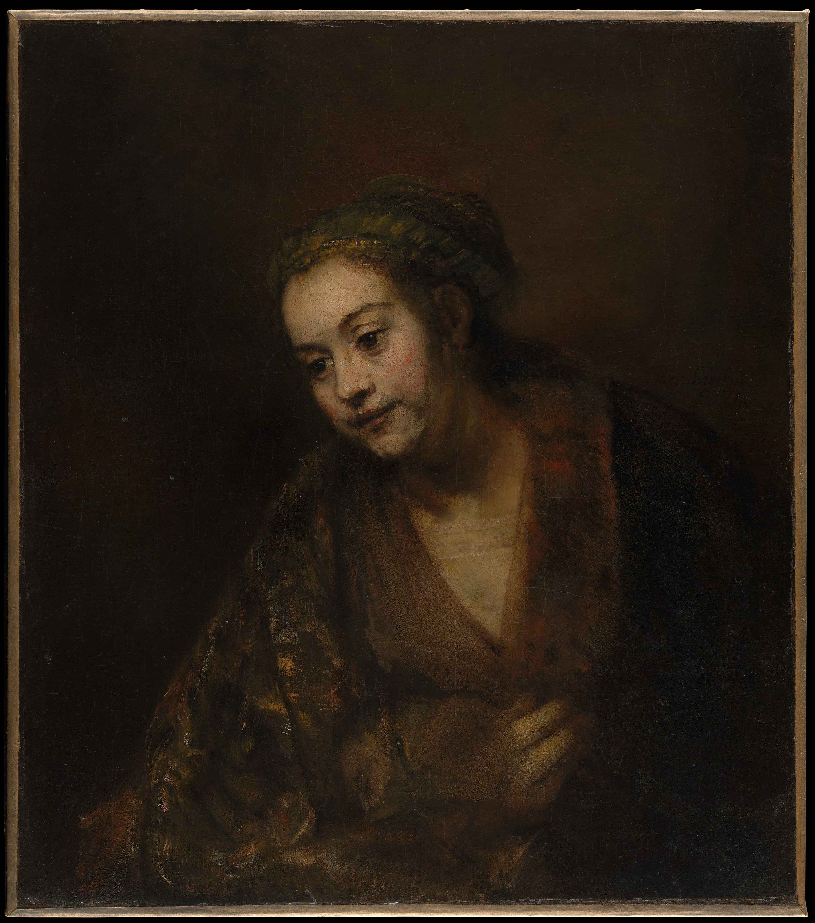 Move to the portrait of Hendrickje Stoffels, rendered with warm, intimate lighting and tender brushwork.