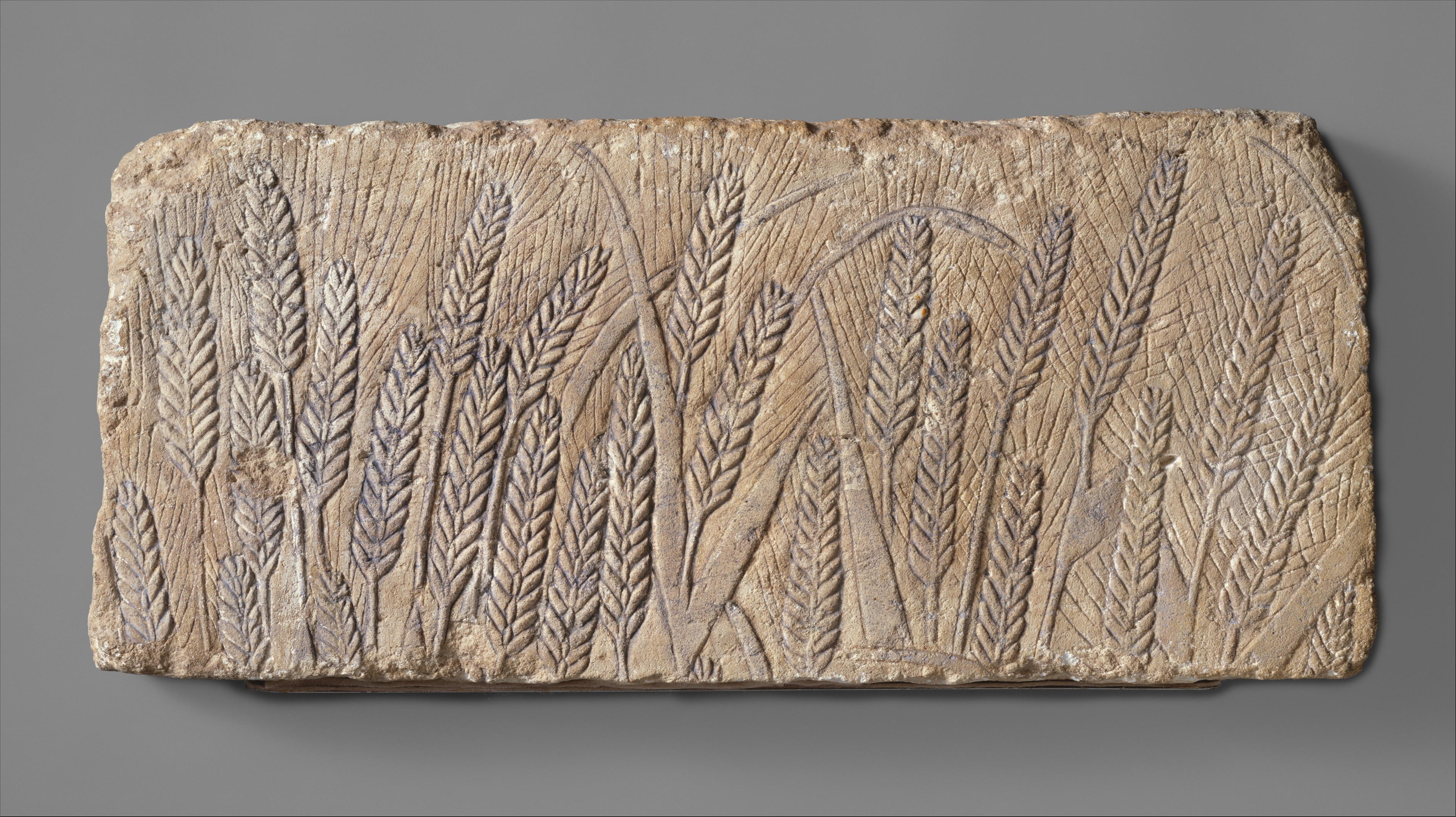 A limestone relief showing ripe barley at life-size scale, carved with remarkable naturalism during the Amarna Period.