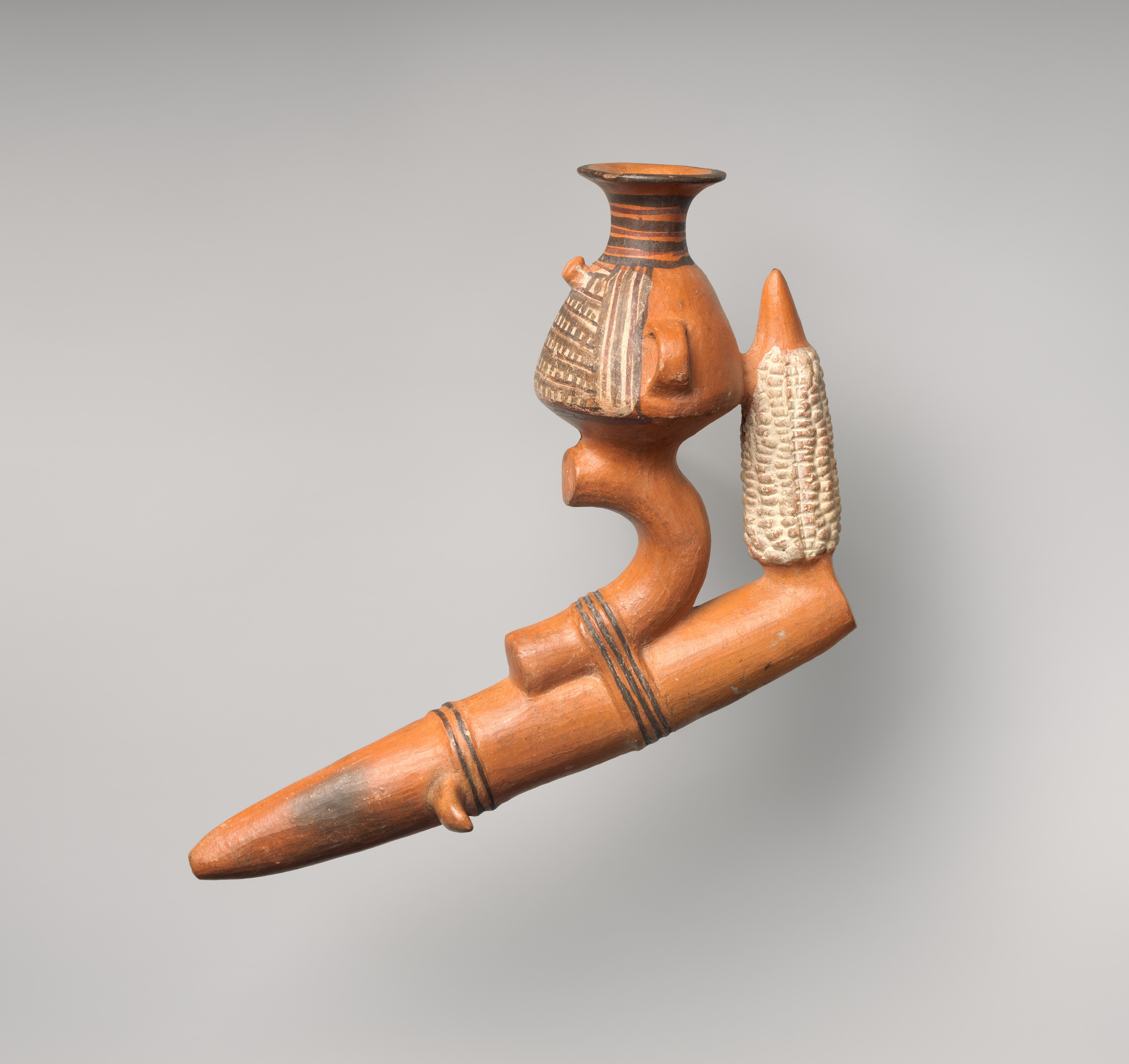 An Inca ritual vessel (paccha) that depicts the complete life cycle of corn, from sowing to harvest to beer-making.
