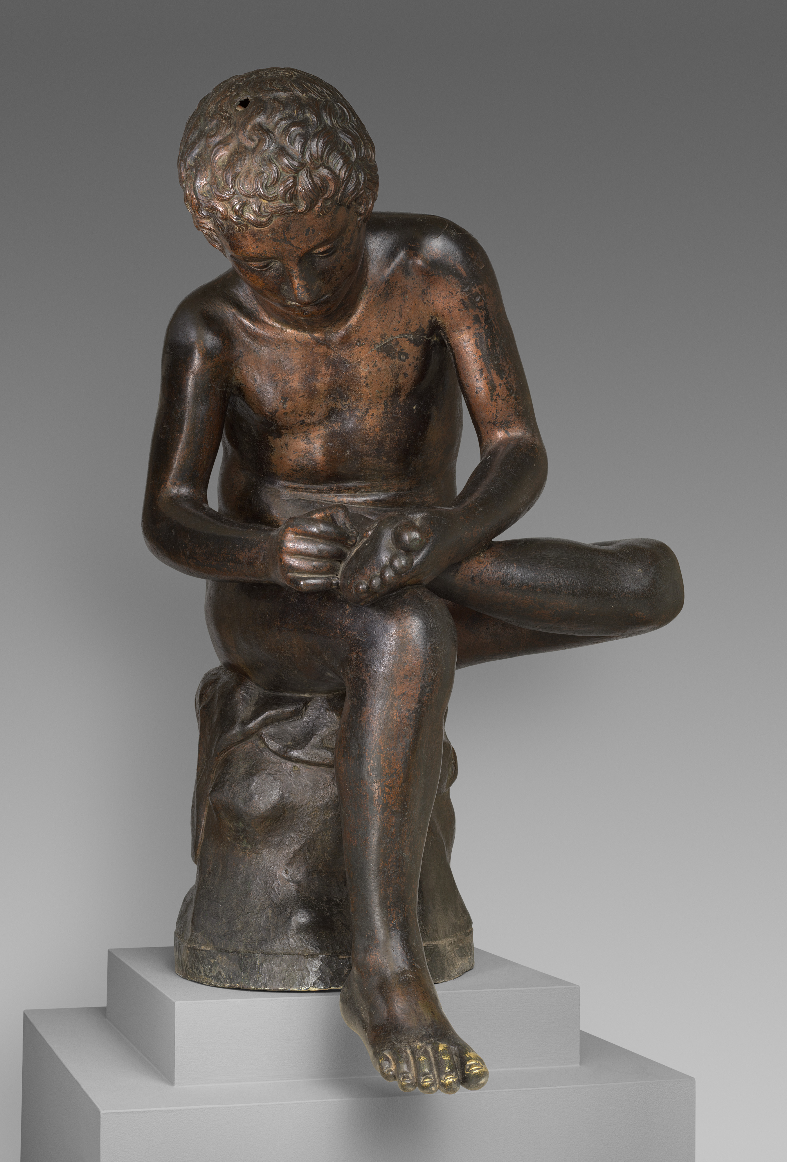 Attributed to Antonello Gagini, early 16th century. The Spinario—a boy extracting a thorn from his foot—based on a famous Hellenistic bronze and serving as a fountain figure.
