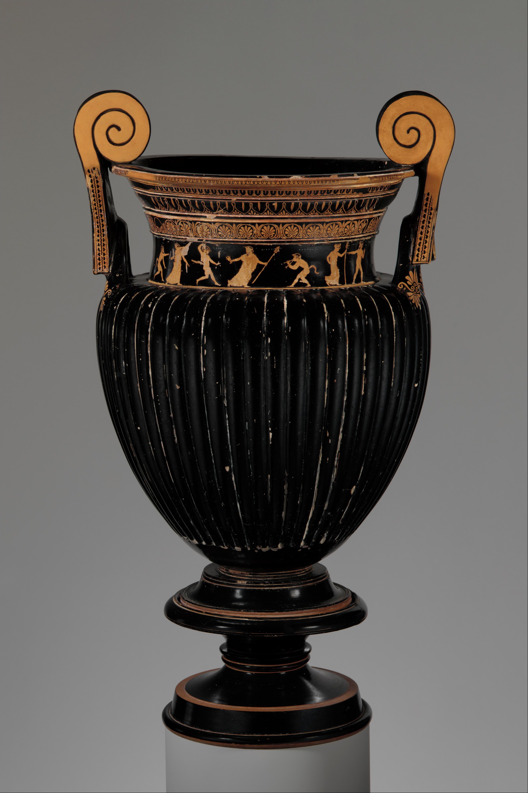 A monumental wine-mixing vessel decorated with Dionysos and his followers—the culmination of Greek wine culture in a single masterpiece.