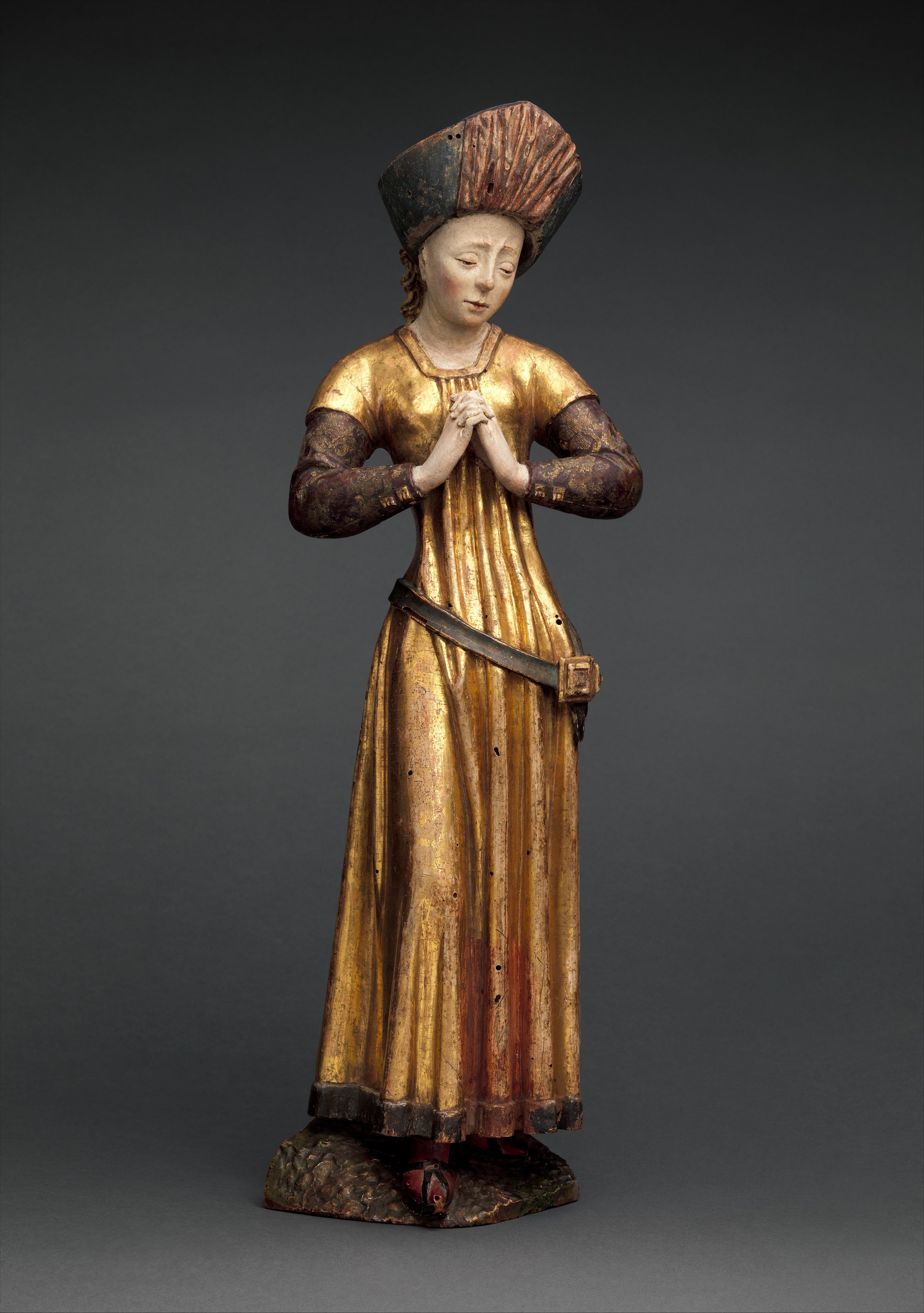 Mourning Woman, South Netherlandish, ca. 1480. Carved walnut with polychromy and gilding.