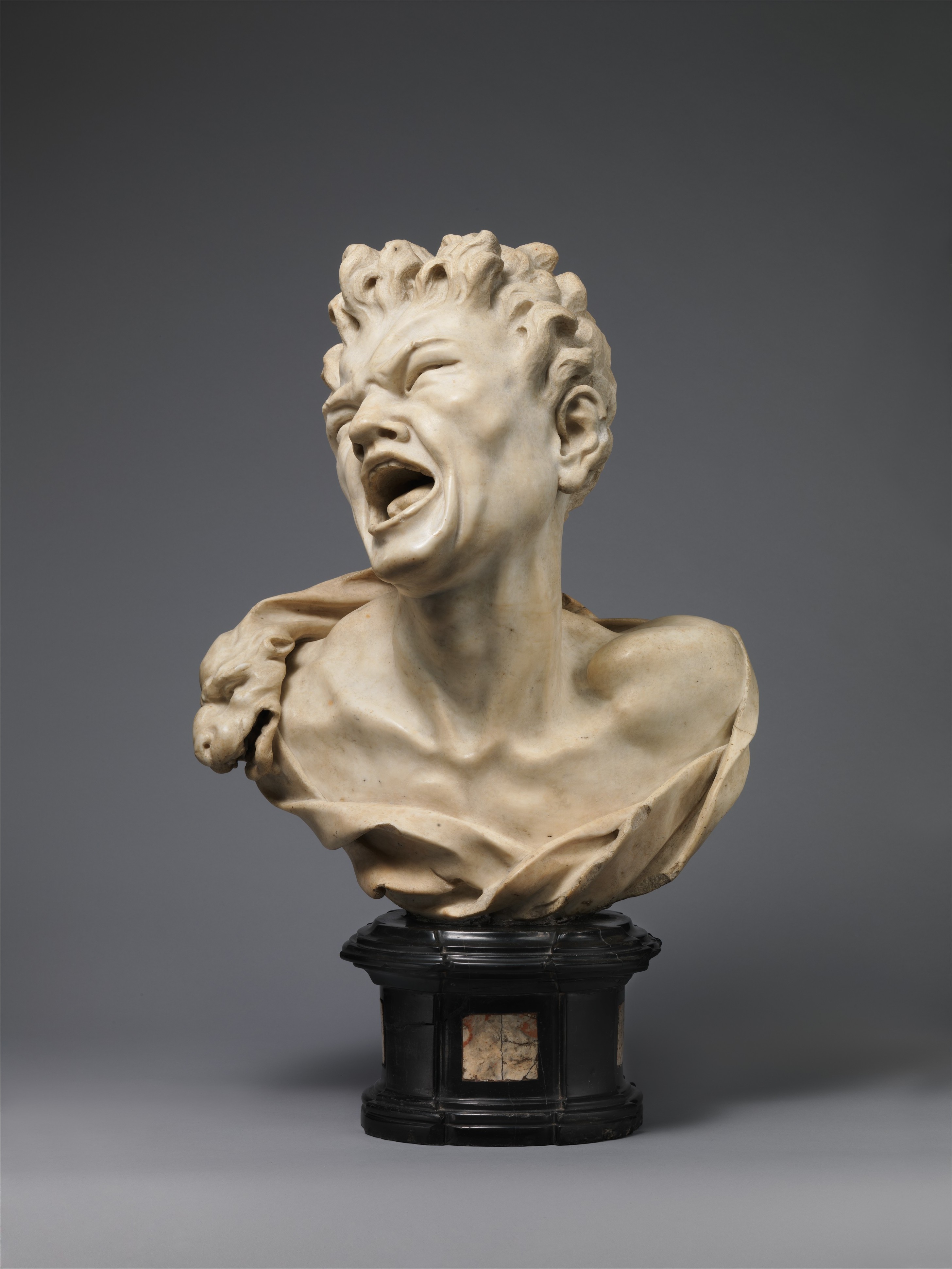 Marsyas, by Balthasar Permoser, ca. 1680–85. Marble bust depicting the satyr's torture and death.